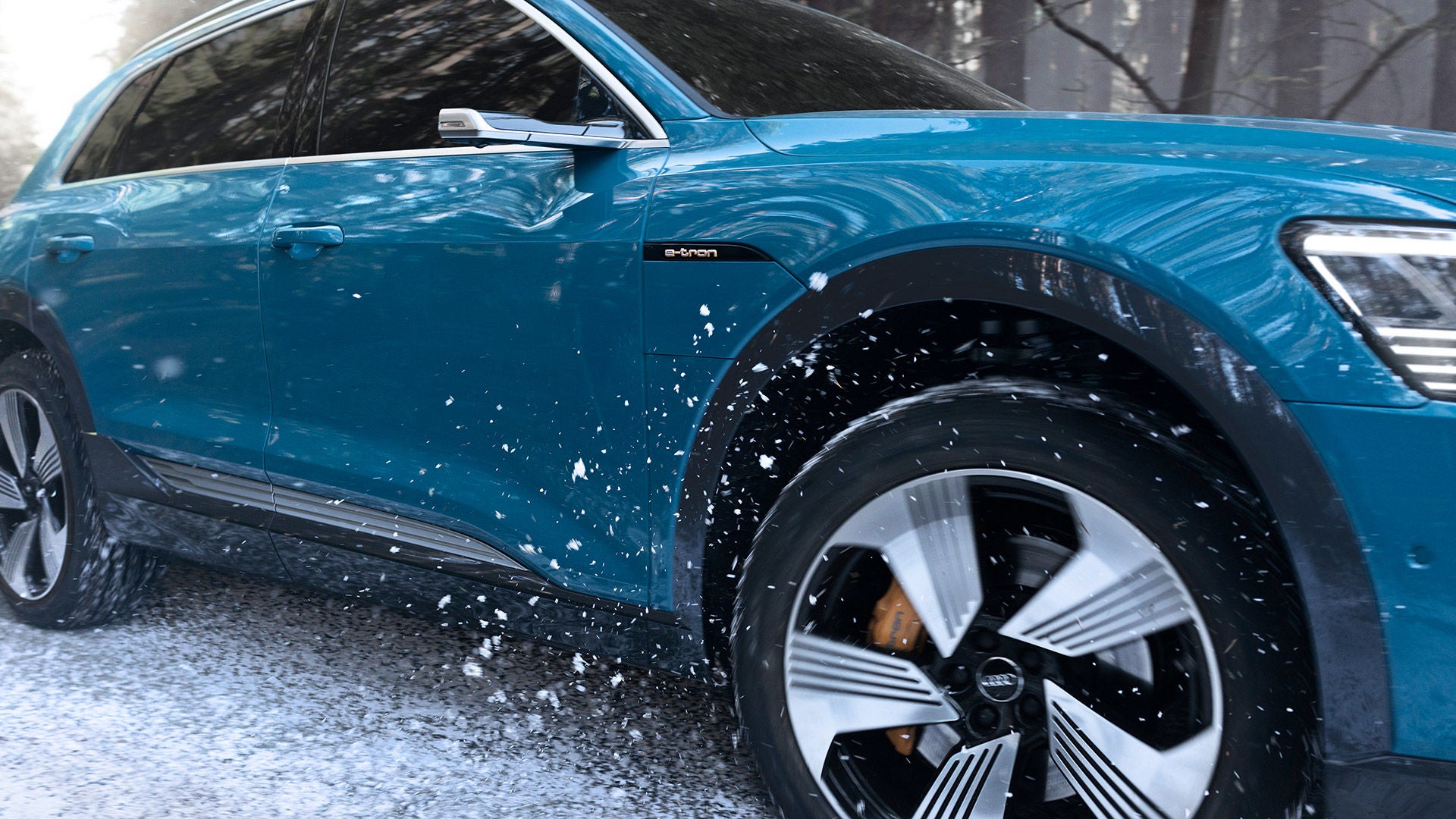 You need to experience for yourself the starting performance of the Audi e-tron (Combined electric power consumption* in kWh/100 km: 24.3–21.0 (NEDC); 26.6–22.4 (WLTP); CO₂ emissions combined* in g/km: 0). Whether you accelerate from a standstill or overtake on the motorway - the power unfolds immediately. Even in reverse, you will feel the high level of torque. Optimum traction ensures a new generation of the quattro drive, which can be switched on when needed. The result: you have full control over the vehicle.