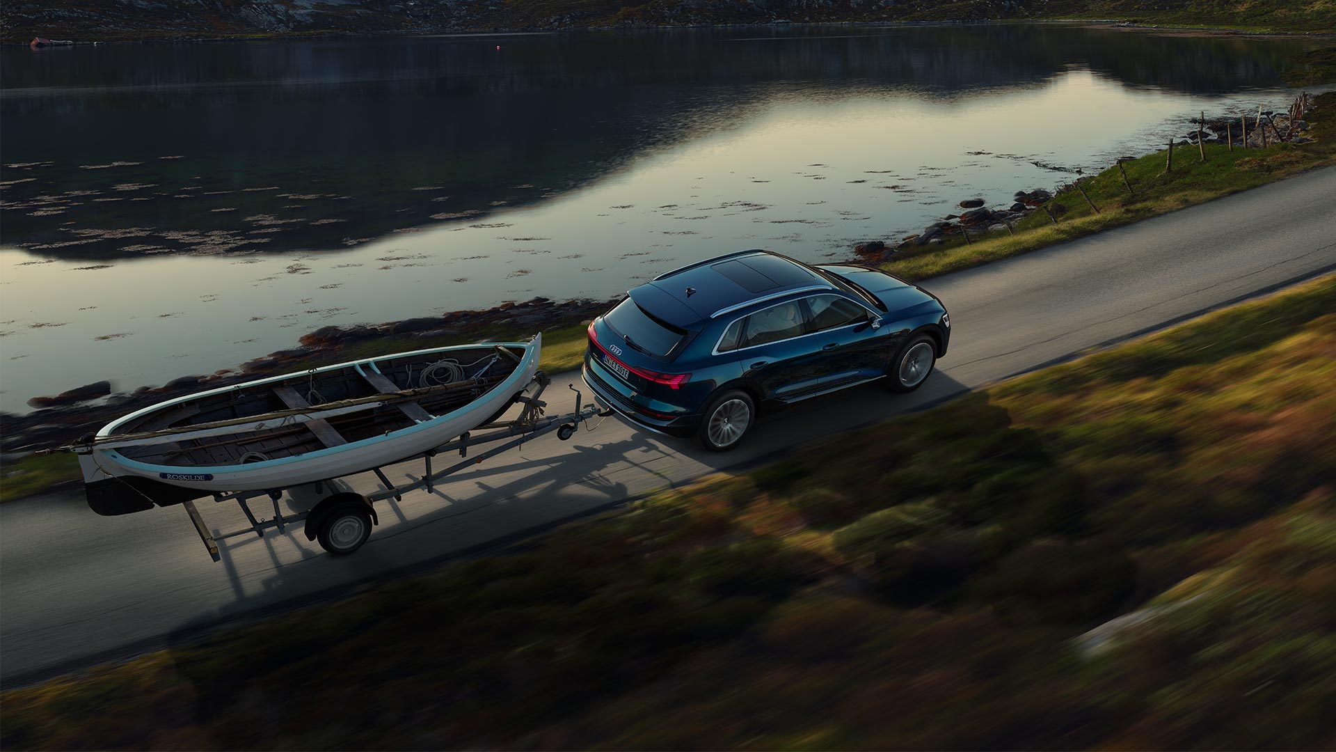 Combined electric power consumption* in kWh/100 km: 24.3–21.0 (NECD); 26.6–22.4 (WLTP) CO₂ emissions combined* in g/km: 0 This is your chance: Dive into the exciting world of electromobility with the Audi e-tron and help shape the future. With up to 300 kW (408 hp) of power and up to 436 kilometres of range, our first all-electric SUV is your sporty and safe companion that's suitable for everyday driving in a new era. With the Audi e-tron 50 quattro and the Audi e-tron 55 quattro, we offer two different performance variants that are tailored to your needs.