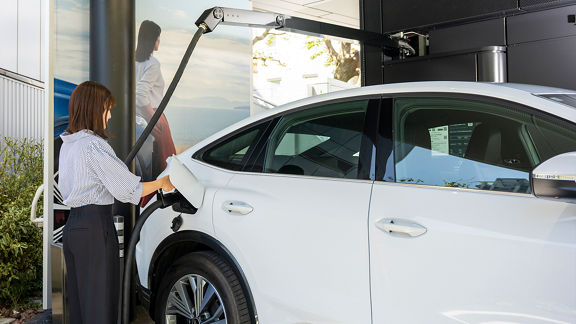 The patented Audi swivel arm installed in Shibakōen is attached to the top of the hypercharger. Handling is easy thanks to the cable routing. It enables effortless access to the vehicle’s charging port and keeps the charging cable off the floor. The technology is already known and used successfully at Audi sites in Europe.