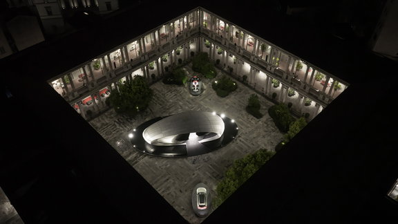 La instalación “Origin” condensa la esencia del progreso al reducirlo a lo fundamental, eliminando lo superfluo para revelar una intención pura. Ubicada en el patio del antiguo seminario arzobispal hoy el Portrait Hotel en Corso Venezia, la escultura establece un diálogo sutil con su entorno histórico.